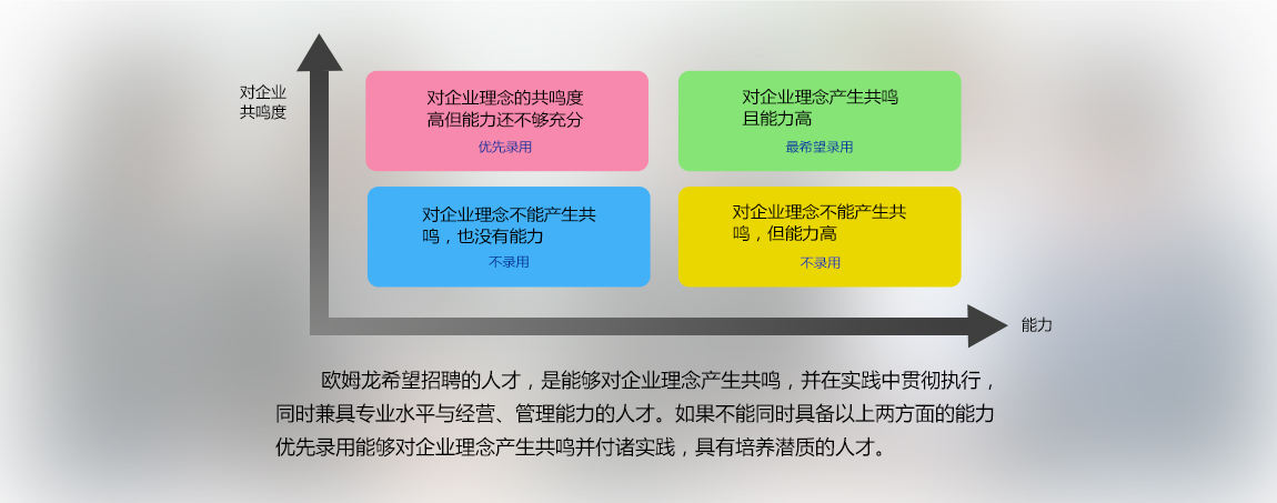 | 2015年5月,欧姆龙集团对企业理念重新进行了修订,新的企业理念更加明确清晰地表述了欧姆龙的企业宗旨—“企业是为社会做贡献的”。新的企业理念希望吸引那些能将个人成长与企业成长相结合,并且个人的专业技能和职业规划与欧姆龙相符的人才。为了实现这一目标,欧姆龙以培养长期人才为出发点制定了招聘计划。在招聘时欧姆龙不仅仅考虑您的专业技能,更加重视的是您自身的潜力、对于工作的热情以及未来的发展规划是否与欧姆龙的成长相契合 。因此在面试时,请您一定要多描述一些您对今后的职业规划以及希望从事的工作内容。这样我们可以通过相互沟通,来了解并判断欧姆龙是否有您所希望的工作及环境、欧姆龙是否可以为您的职业生涯发展提供成长的平台。 |